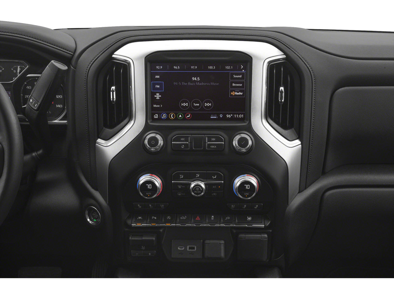 SLT PREMIUM PLUS PACKAGE includes (PCY) SLT Convenience Package, (PDY) SLT Preferred Package, (PQB) Driver Alert Package I, (PDJ) Driver Alert Package II, (NZM) 20" Polished aluminum wheels, (PTT) Trailer Tire Pressure Monitor System, (BVT) Chrome assist steps and (CGN) spray-on bedliner. SLT CONVENIENCE PACKAGE includes (A50) bucket seats with (D07) center console, (KQV) ventilated front seats, (A48) rear sliding power window, (UG1) Universal Home Remote, (MCZ) 2 USB ports with auxiliary input; Crew Cab models also include (KA6) rear heated seats, SLT PREFERRED PACKAGE includes (IOT) 8" diagonal Premium GMC Infotainment with navigation, (UQA) Bose Premium Audio System and (K4C) Wireless Charging, DRIVER ALERT PACKAGE I includes (UD5) Front and Rear Park Assist, (UKC) Lane Change Alert with Side Blind Zone Alert and (UFG) Rear Cross Traffic Alert (Includes Perimeter Lighting. Includes (V76) recovery hooks on 2WD models. X31 OFF-ROAD PACKAGE includes Off-Road suspension, (JHD) Hill Descent Control, (NZZ) skid plates, (K47) high-capacity air filter and X31 hard badge Includes (NQH) 2-speed transfer case, (XCK) 265/65R18SL all-terrain, blackwall tires, (N10) dual exhaust. DRIVER ALERT PACKAGE II includes (UEU) Forward Collision Alert, (UHX) Lane Keep Assist/Lane Departure Warning, (UHY) Low Speed Forward Automatic Braking, (UKJ) Front Pedestrian Braking, (TQ5) IntelliBeam headlamps and (UE4) Following Distance Indicator Includes (HS1) Safety Alert Seat. AUDIO SYSTEM, PREMIUM GMC INFOTAINMENT SYSTEM WITH NAVIGATION AND 8" DIAGONAL COLOR TOUCH-SCREEN, INCLUDES MULTI-TOUCH DISPLAY, AM/FM STEREO Bluetooth® streaming audio for music and most phones; featuring Android Auto® and Apple CarPlay® capability for compatible phones, advanced voice recognition, in-vehicle apps, personalized profiles for infotainment and vehicle settings. Includes greater memory, SEATS, HEATED SECOND ROW OUTBOARD SEATS, ENGINE, 5.3L ECOTEC3 V8 (355 hp [265 kW] @ 5600 rpm, 383 lb-ft of torque [518 Nm] @ 4100 rpm); featuring all-new Dynamic Fuel Management that enables the engine to operate in 17 different patterns between 2 and 8 cylinders, depending on demand, to optimize power delivery and efficiency (STD), TRANSMISSION, 8-SPEED AUTOMATIC, ELECTRONICALLY CONTROLLED with overdrive and tow/haul mode. Includes Cruise Grade Braking and Powertrain Grade Braking (STD).